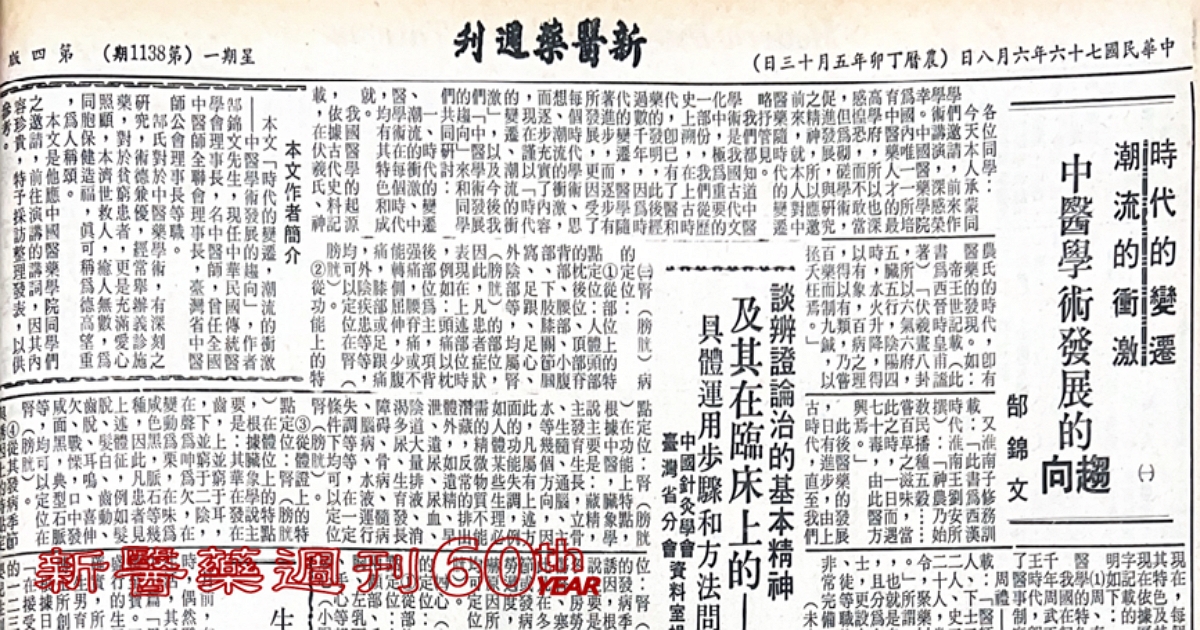 一、時代的變遷、潮流的衝激、中醫學術在每個時代,均有其特色和成就。